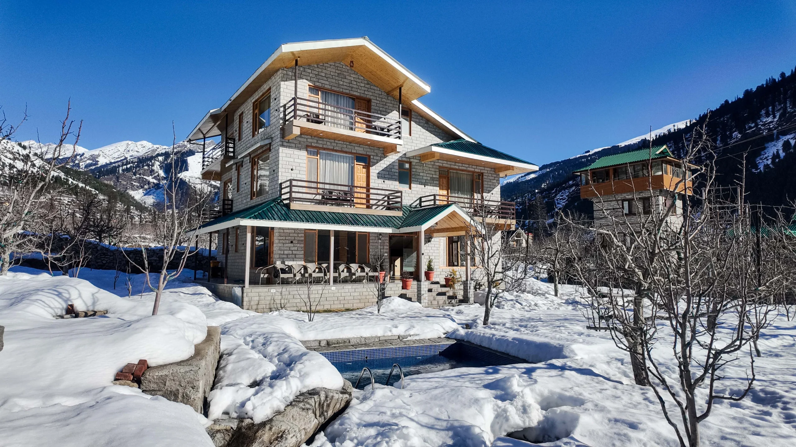 Located near Manali’s iconic Snow Point, this property is perfect for snow lovers and adventure seekers. Enjoy quick access to snow activities, making every winter stay unforgettable.