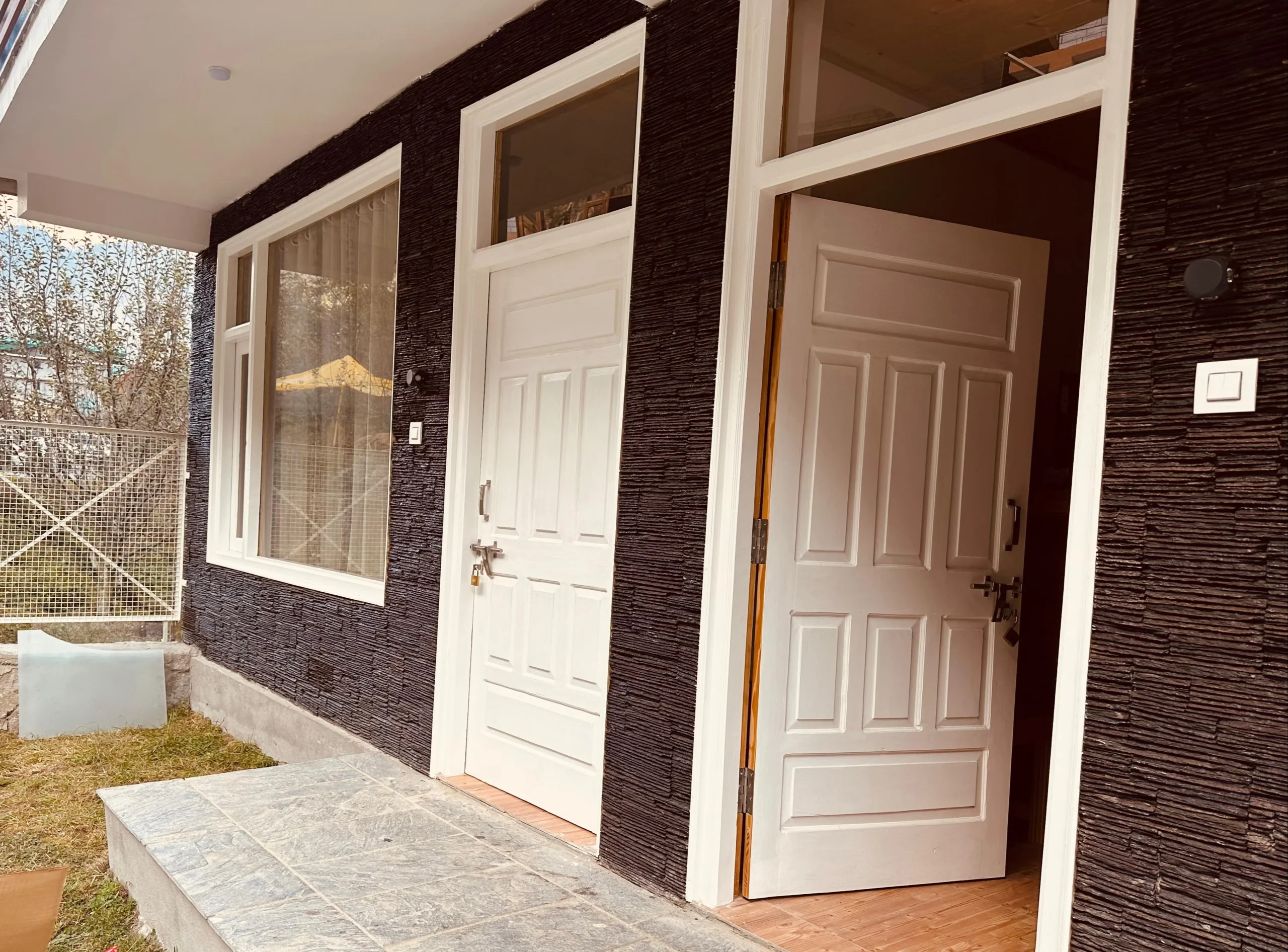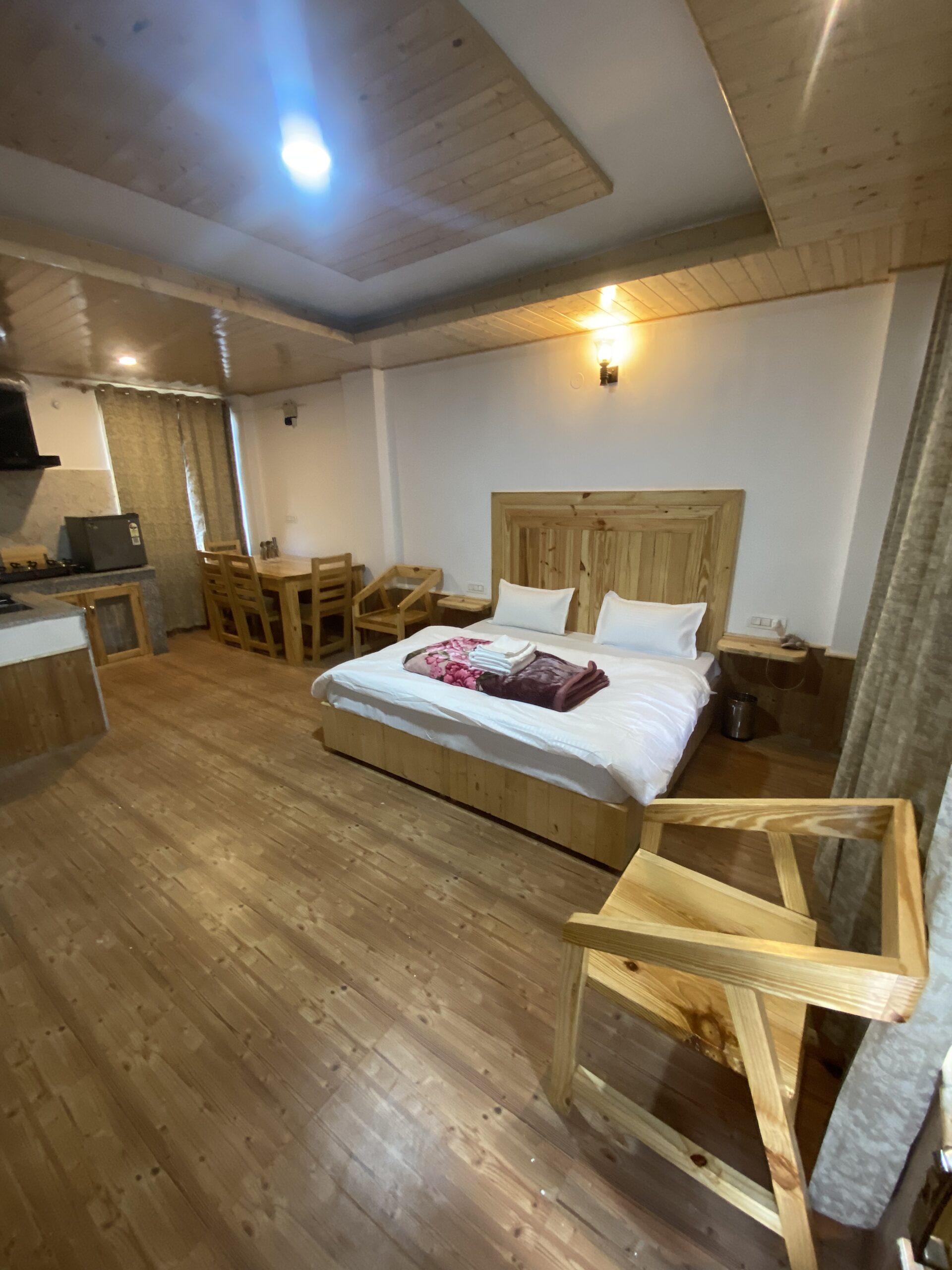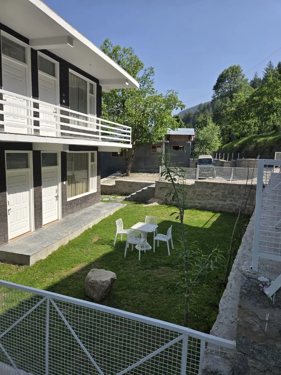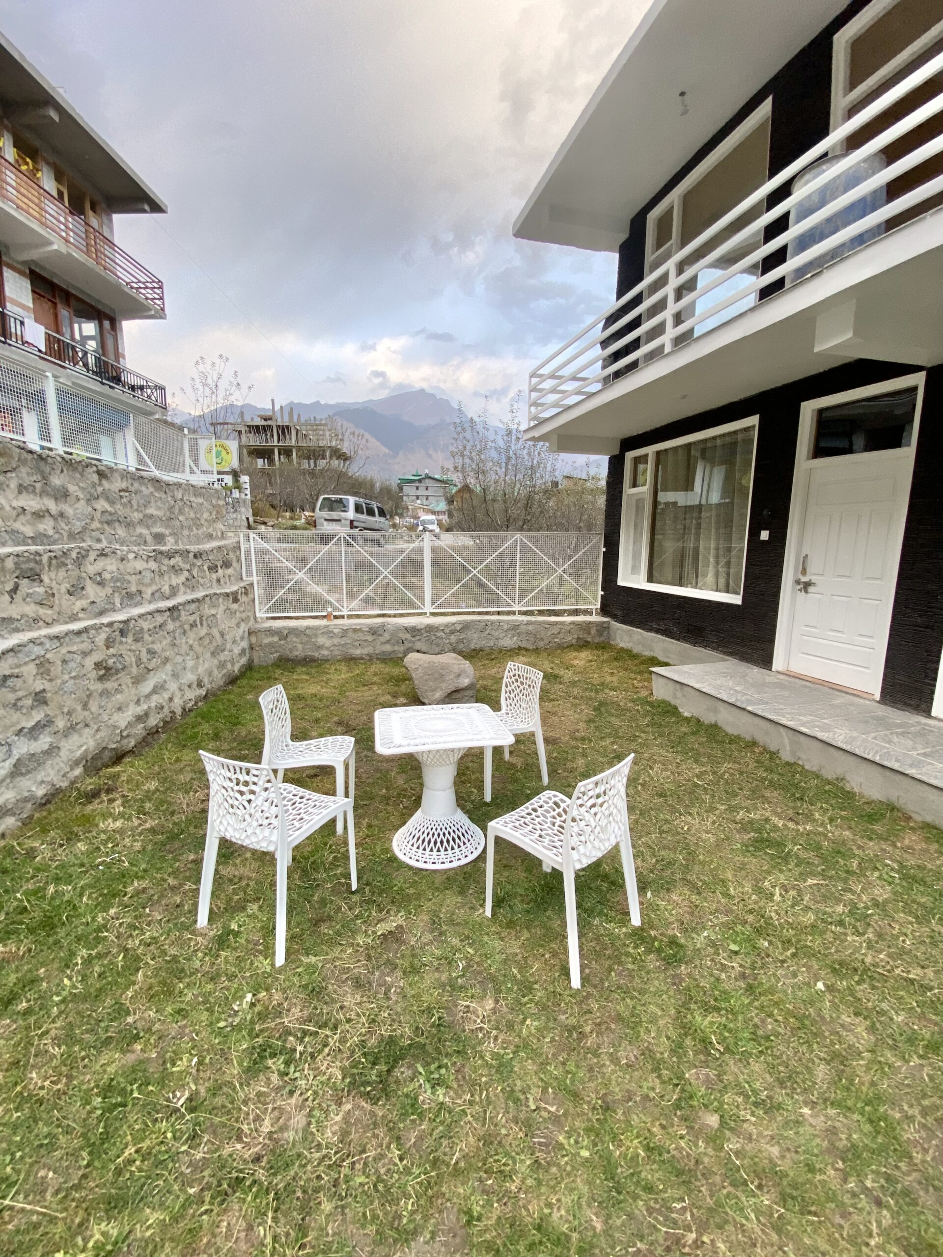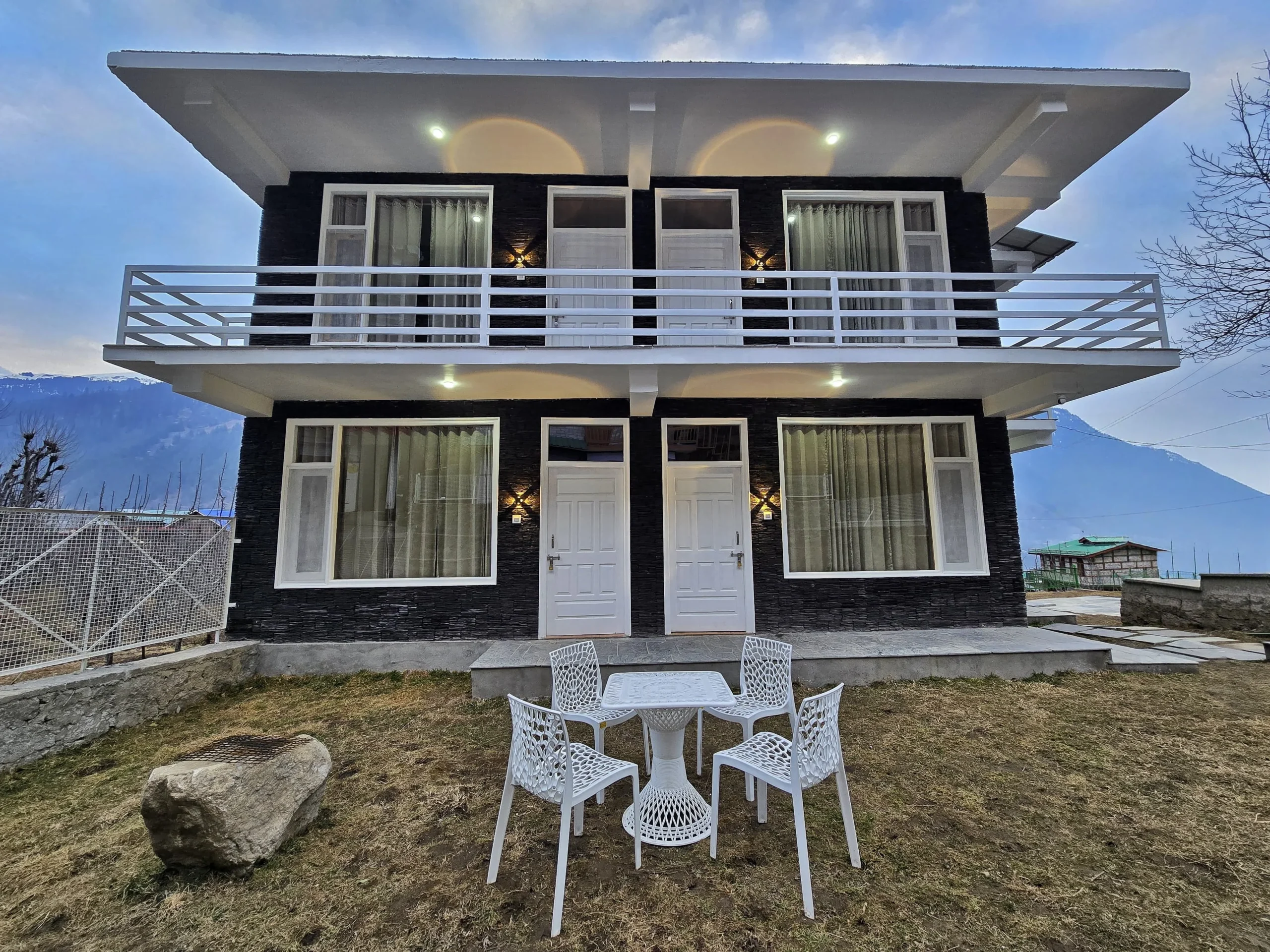 Escape to “The Stone Hedge,” where luxury meets nature. Our newly constructed exquisite two-bedroom ground floor feature spacious bedrooms with attached washrooms for privacy. Enjoy a fully equipped kitchen and a cozy dining area, perfect for family meals.The stylish living space invites relaxation and entertainment. Step outside to a beautiful front lawn for sun-soaking or unwind in the barbeque area, all while taking in stunning views of Rohtang Pass and the Pir-Panjal mountains.