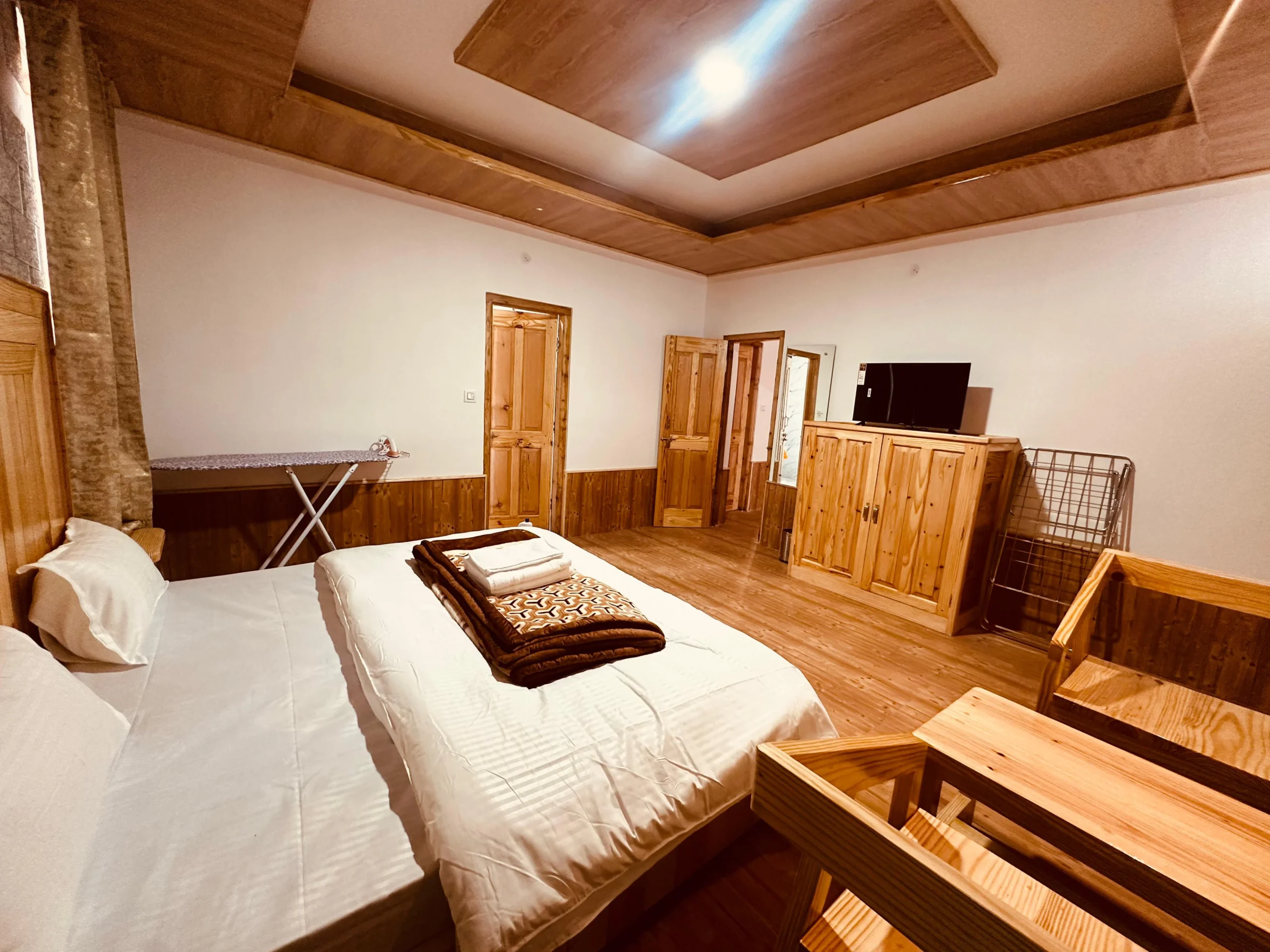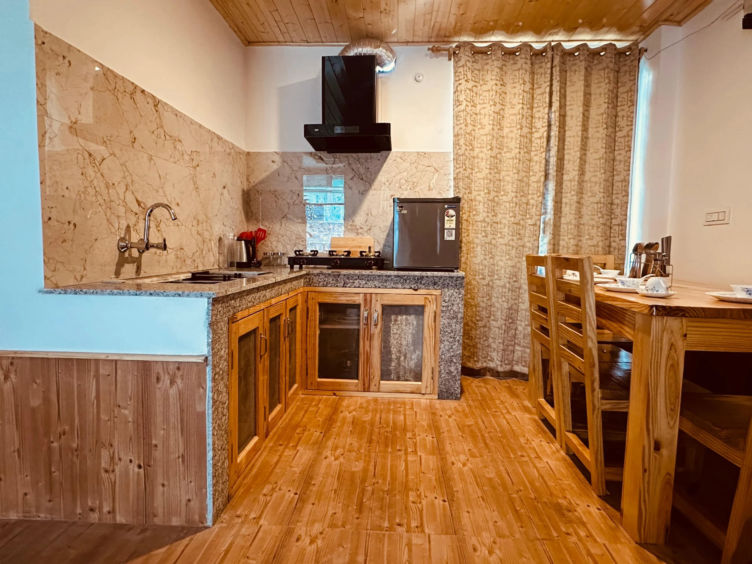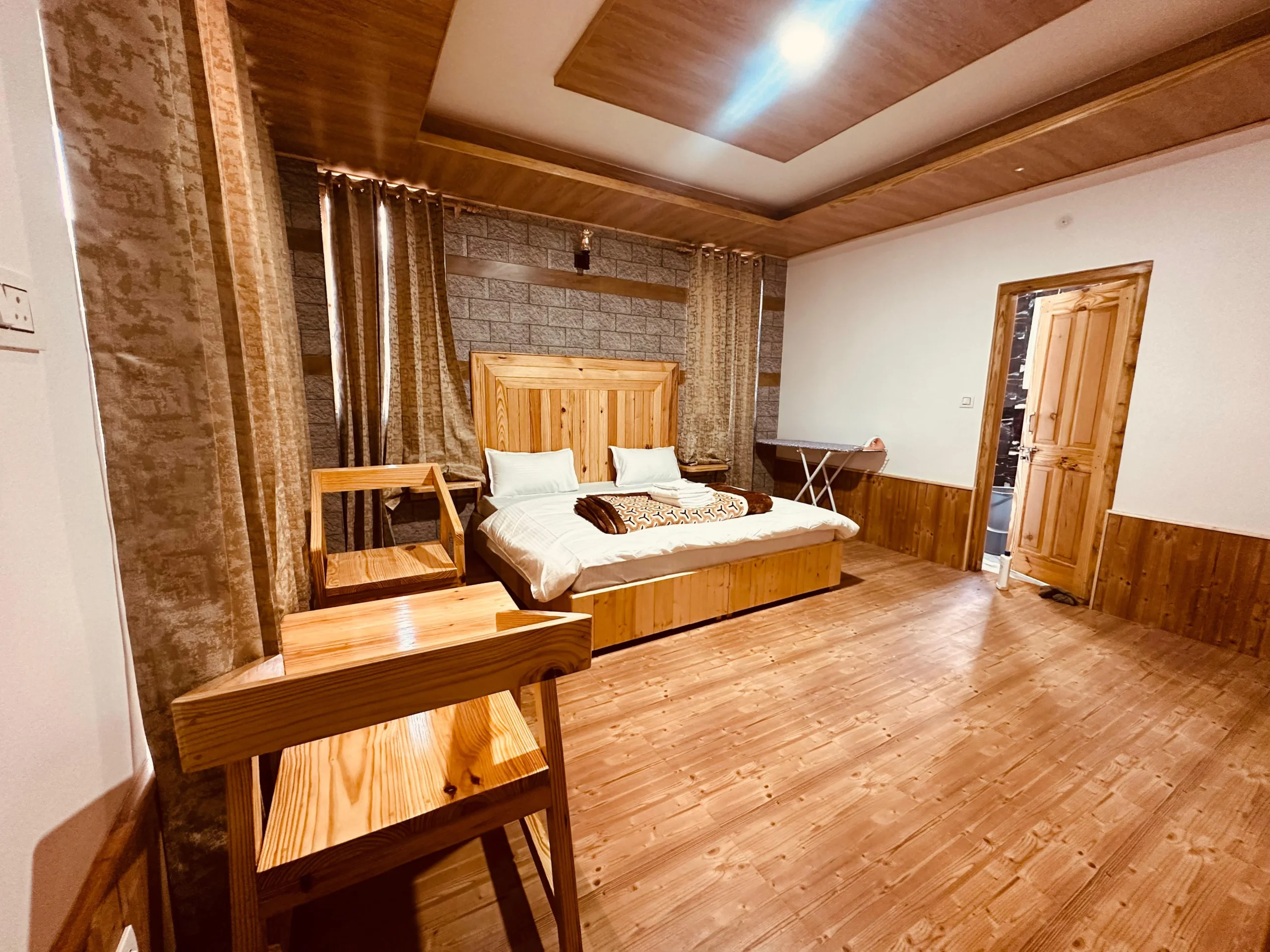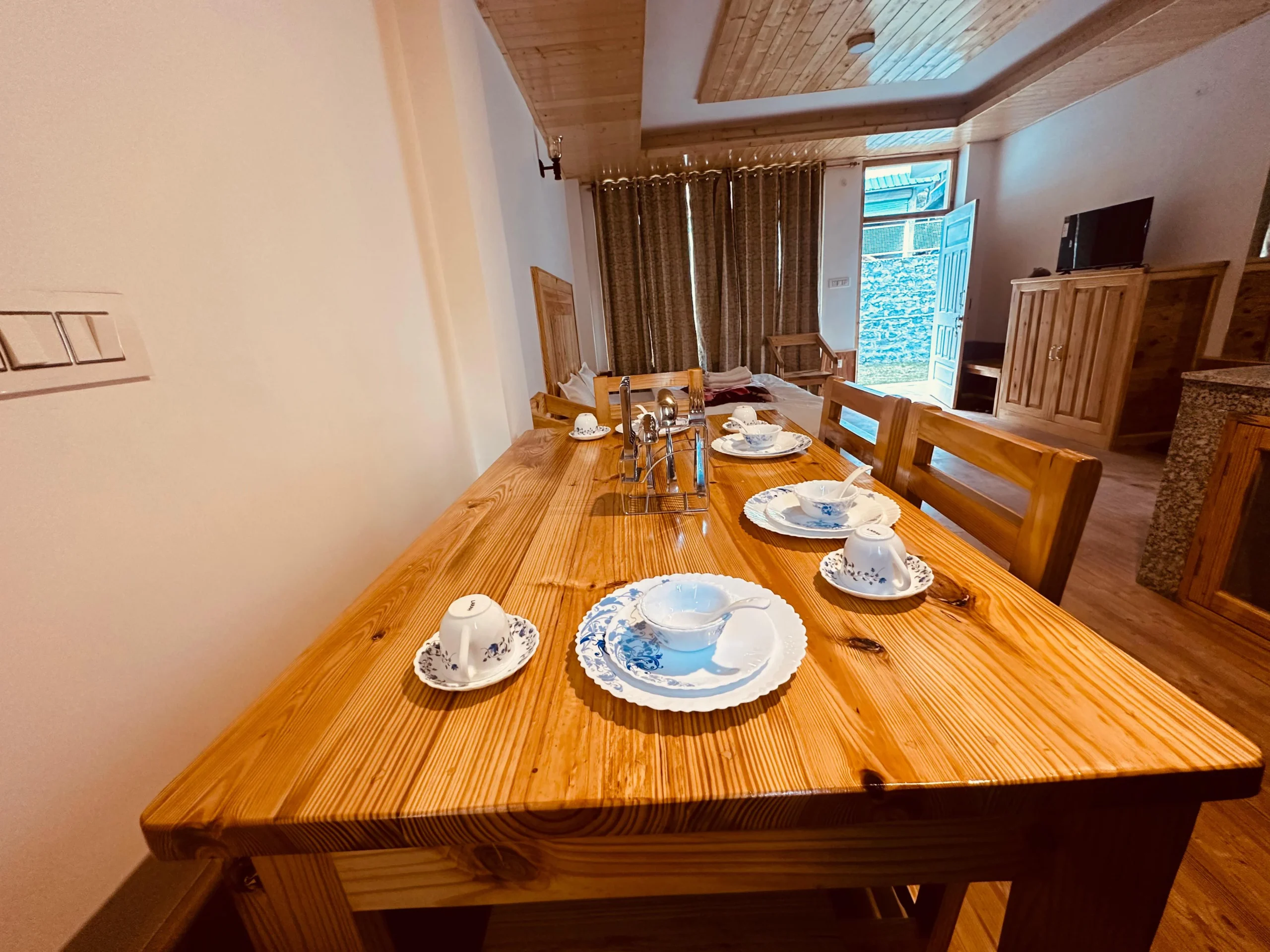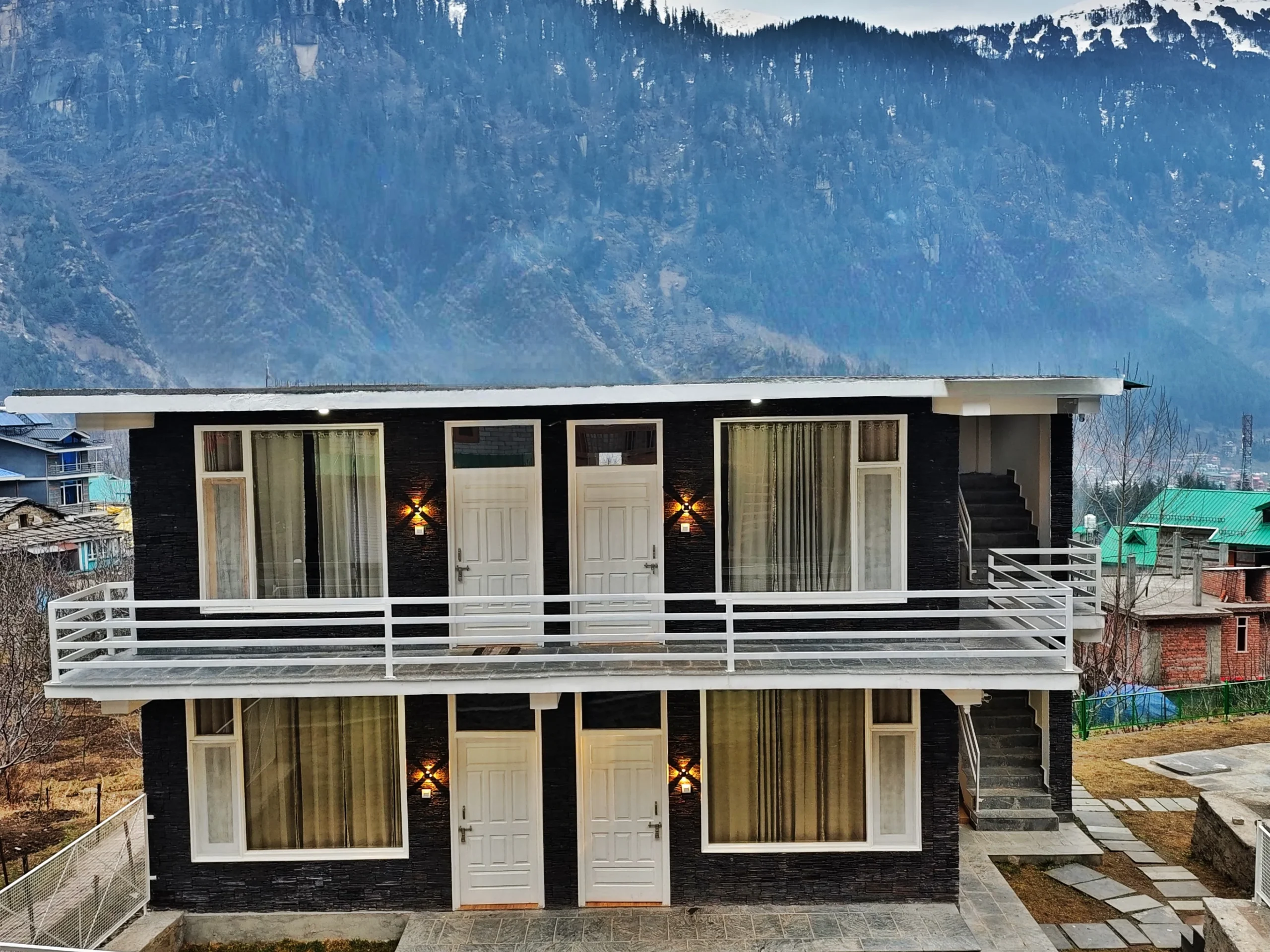 Escape to “The Stone Hedge,” where luxury meets nature. Our newly constructed exquisite two-bedroom ground floor feature spacious bedrooms with attached washrooms for privacy. Enjoy a fully equipped kitchen and a cozy dining area, perfect for family meals.The stylish living space invites relaxation and entertainment. Step outside to a beautiful front lawn for sun-soaking or unwind in the barbeque area, all while taking in stunning views of Rohtang Pass and the Pir-Panjal mountains.